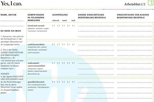 Die Unterrichtsstunde "Meine Erfolgsstory" mit acht Seiten und drei Materialien untersucht die persönlichen Kompetenzen in künstlerisch musischem, sozial kommunikativ, mathematisch naturwissenschaftlich, sprachlich literarischem Gebiet etc. über eine Selbsteinschätzung mithilfe eines Materials und Feedback.